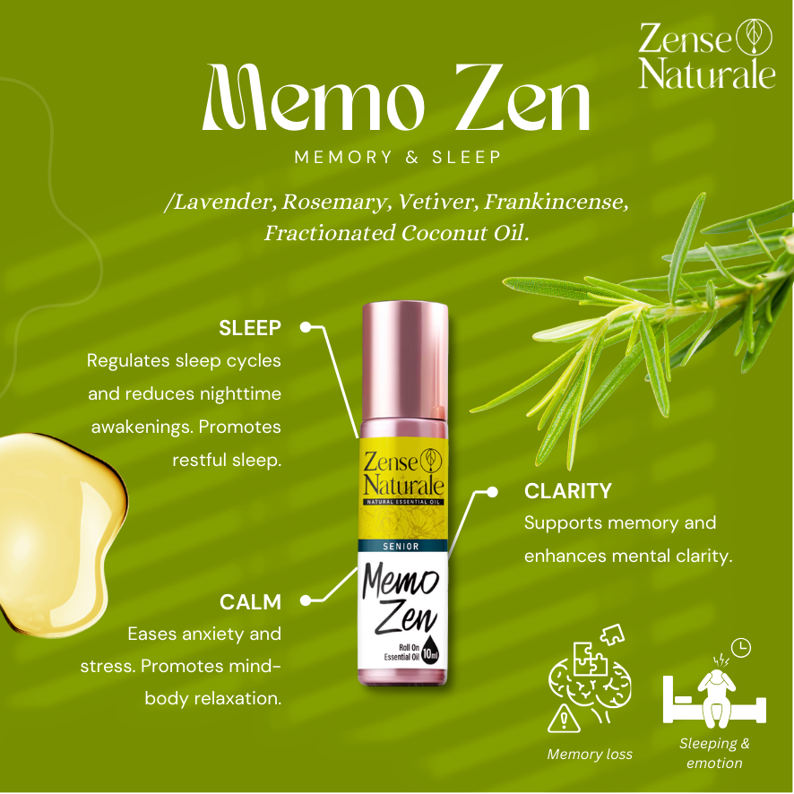 Memo Zen is a thoughtfully crafted essential oil blend made with Lavender, Vetiver, Rosemary, and Frankincense in a base of Fractionated Coconut Oil. This calming, herbaceous aroma is ideal for those seeking daily emotional balance and mental clarity. Designed to uplift mood, support a restful mind, and help restore vitality.
